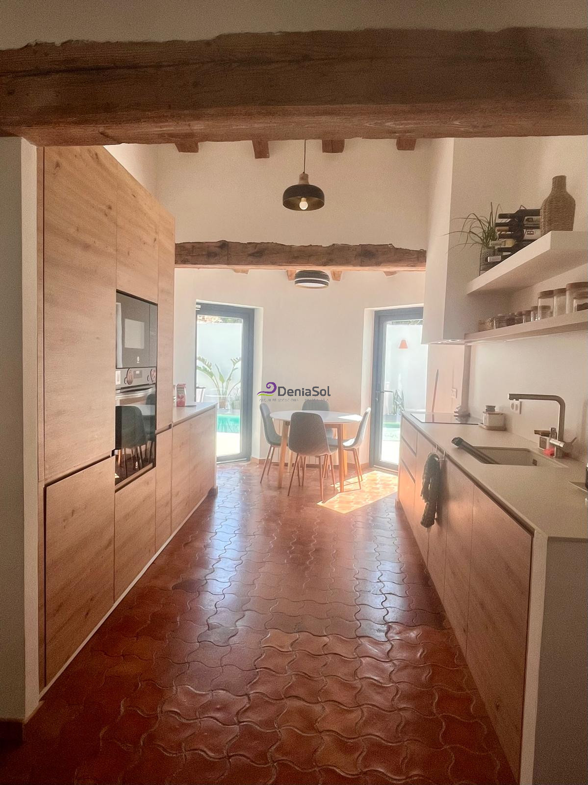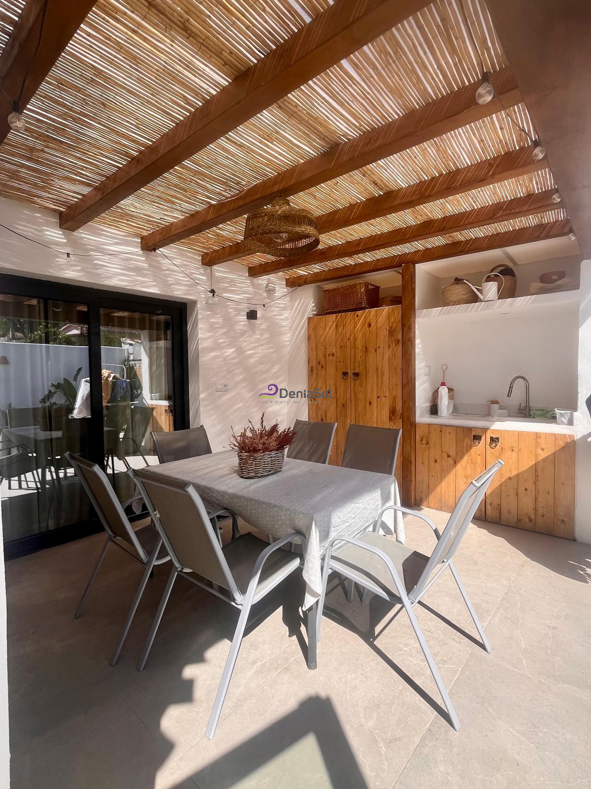Situada en la zona del Montgó, a unos 2 Km. del centro de Denia y 3 Km. de la playa de arena.Tiene una bonita parcela con varias terrazas, tanto cubiertas como descubiertas, piscina privada y barbacoa.