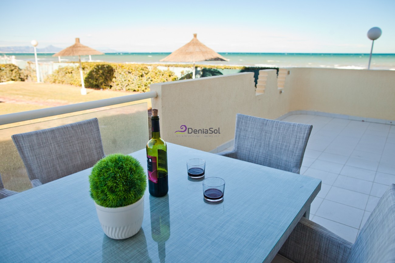 Wohnung in der Gegend von Las Rotas, nur 50m vom Strand und 1 km von Denia und alle seinen Annehmlichkeiten. Die Wohnung im Erdgeschoss verfügt über 2 Schlafzimmer, Wohnzimmer mit offener Küche und 1 Badezimmer. Terrasse zum Pool und Garten.