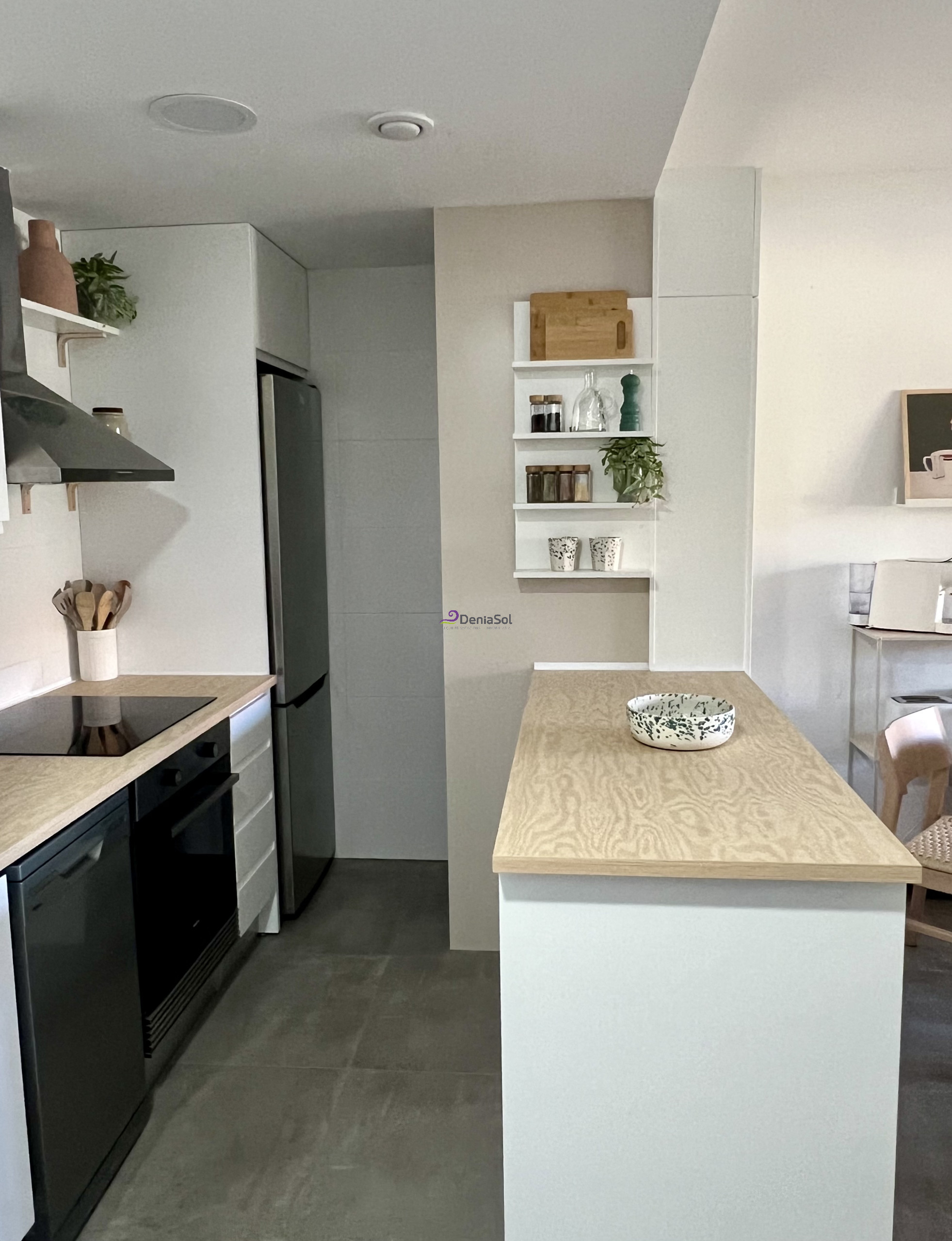 Nur 300 m von Strandt entfernt und 1 km von Denia Zentrum. Erdgeschoss mit Terrasse, Wohn/Esszimmer, offene Küche, Schlafzimmer und Badezimmer.