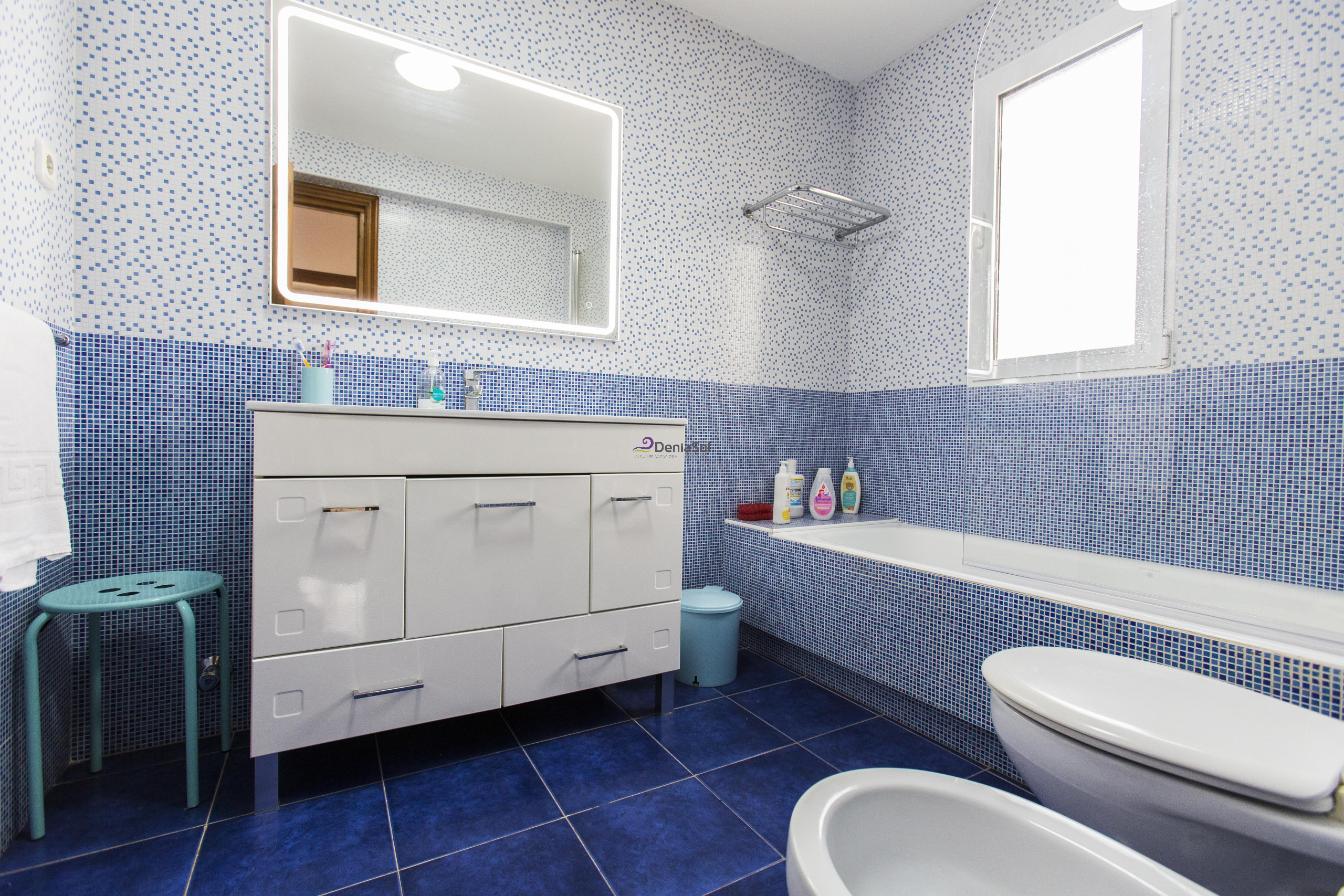 Das Innere der Villa verfügt über 3 Badezimmer (2 mit Dusche und 1 mit Badewanne), Klimaanlage in einigen Zimmern und WLAN-Verbindung, um Sie verbunden zu halten. Die voll ausgestattete Küche umfasst Haushaltsgeräte wie Kühlschrank, Gefrierschrank, Waschmaschine, Ofen, Mikrowelle, Kaffeemaschine, Toaster und Geschirrspüler, die die Zubereitung von Mahlzeiten während Ihres Aufenthalts erleichtern.