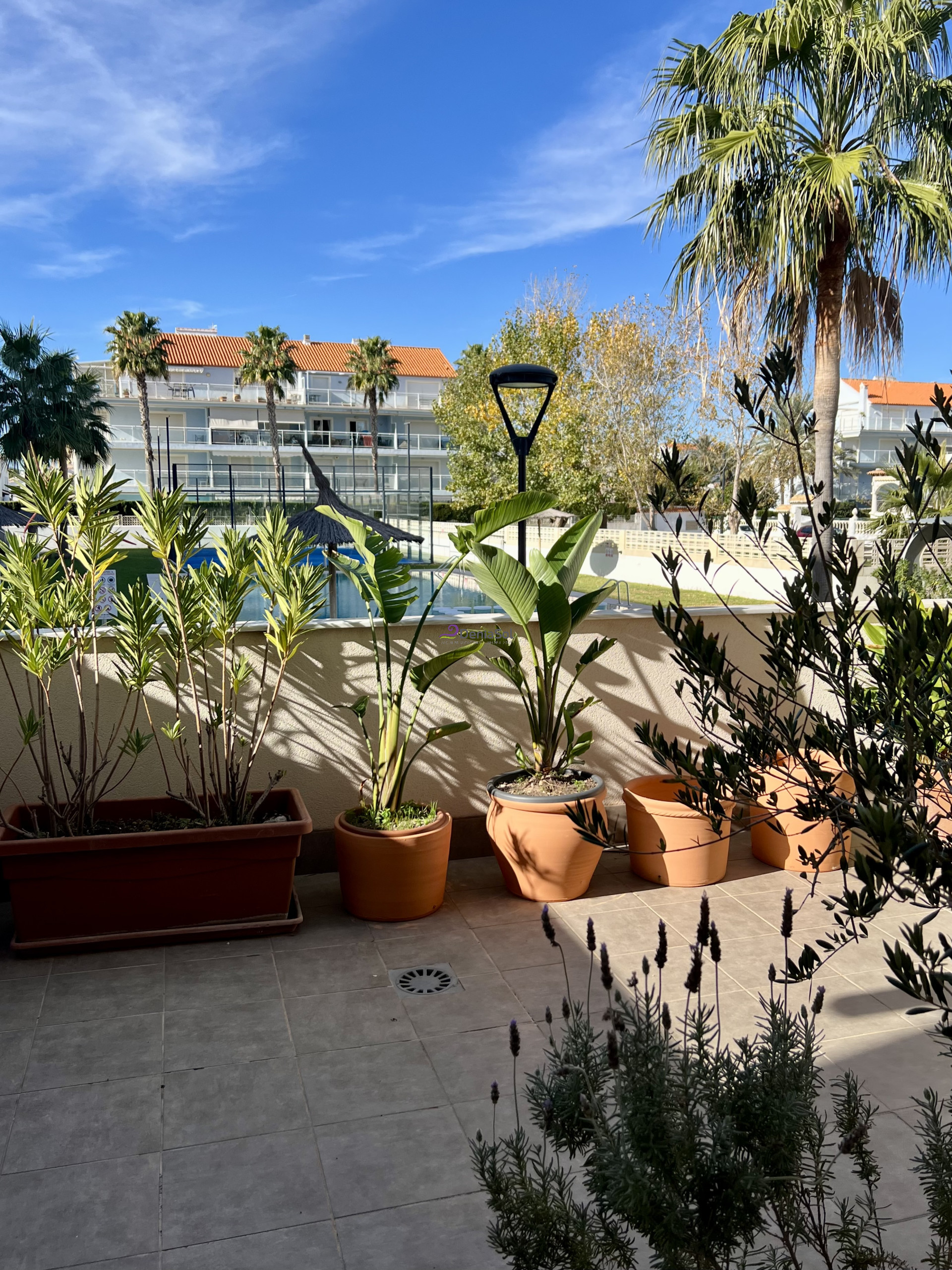 Comfortable ground floor apartment, idealy located at just 300 m from the sea and 1 km from Denia center. It has views to the garden and to the swimming pool.