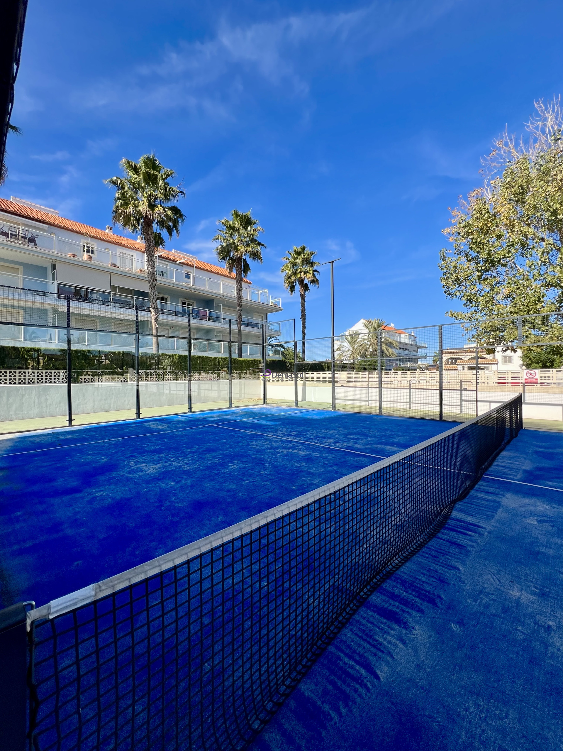 The accommodation is equipped with the following items: lift, garden, terrace, washing machine, iron, internet (Wi-Fi), paddle tennis court, air-conditioned, communal swimming pool, covered parking the same building.