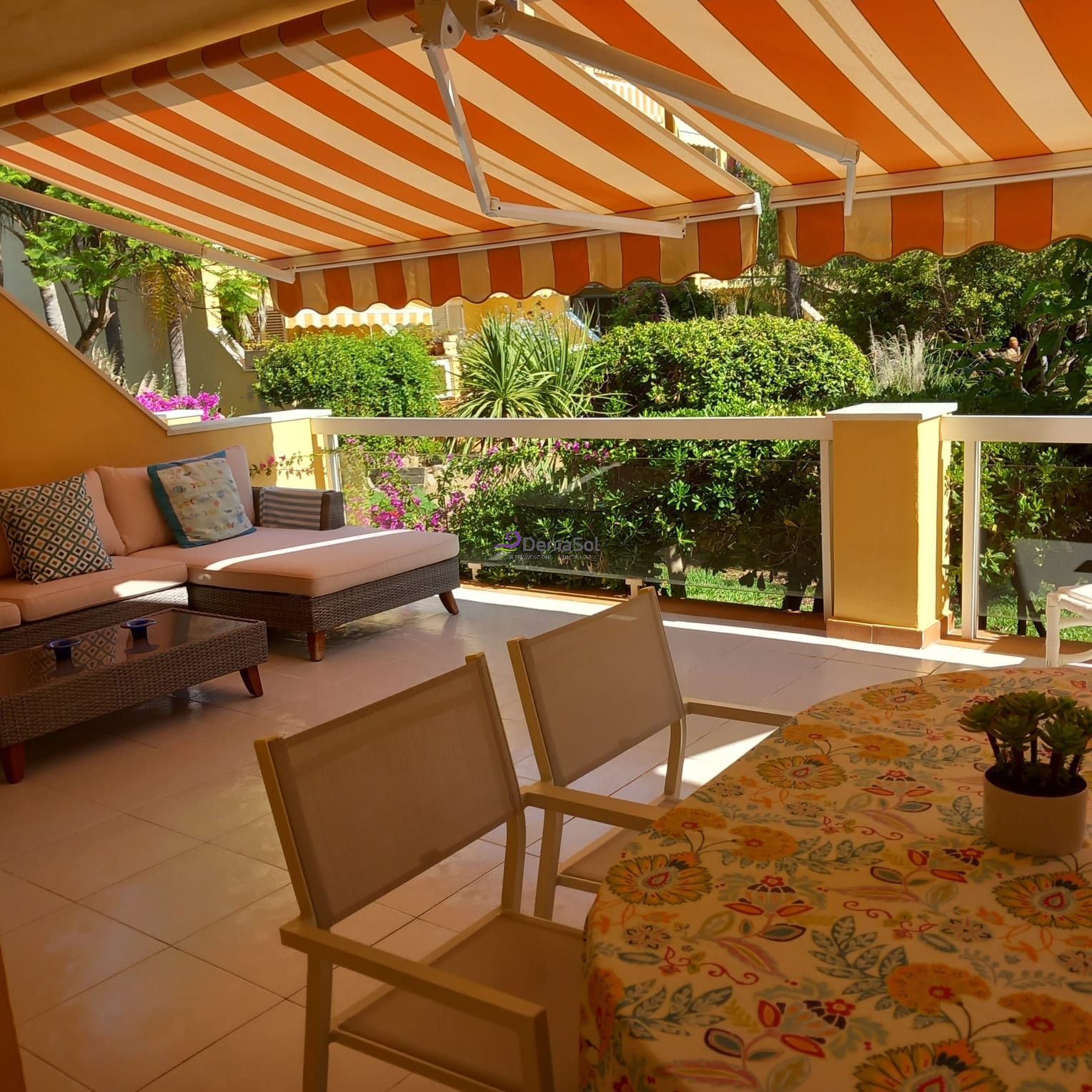 The apartment includes charming outdoor spaces such as a terrace and garden with furniture, perfect for enjoying Mediterranean afternoons. It has a private covered parking space within the same building, facilitating your stay.