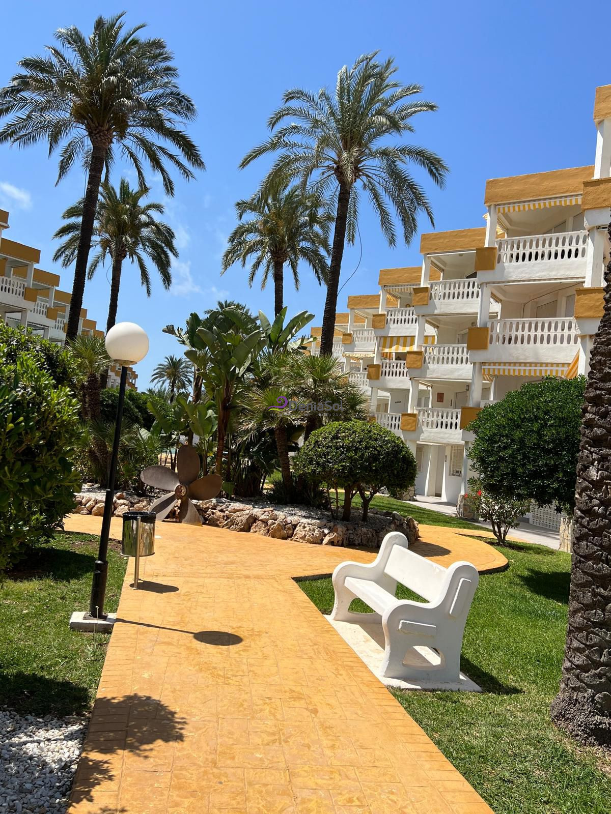 It is a ground floor without elevator in a residential complex with a large garden area and community pool and direct access to the beach. The property consists of an entrance hall, living-dining room with access to the terrace, kitchen, two bedrooms, a bathroom with shower. Air conditioning in the living room. Outdoor parking in the residential complex.