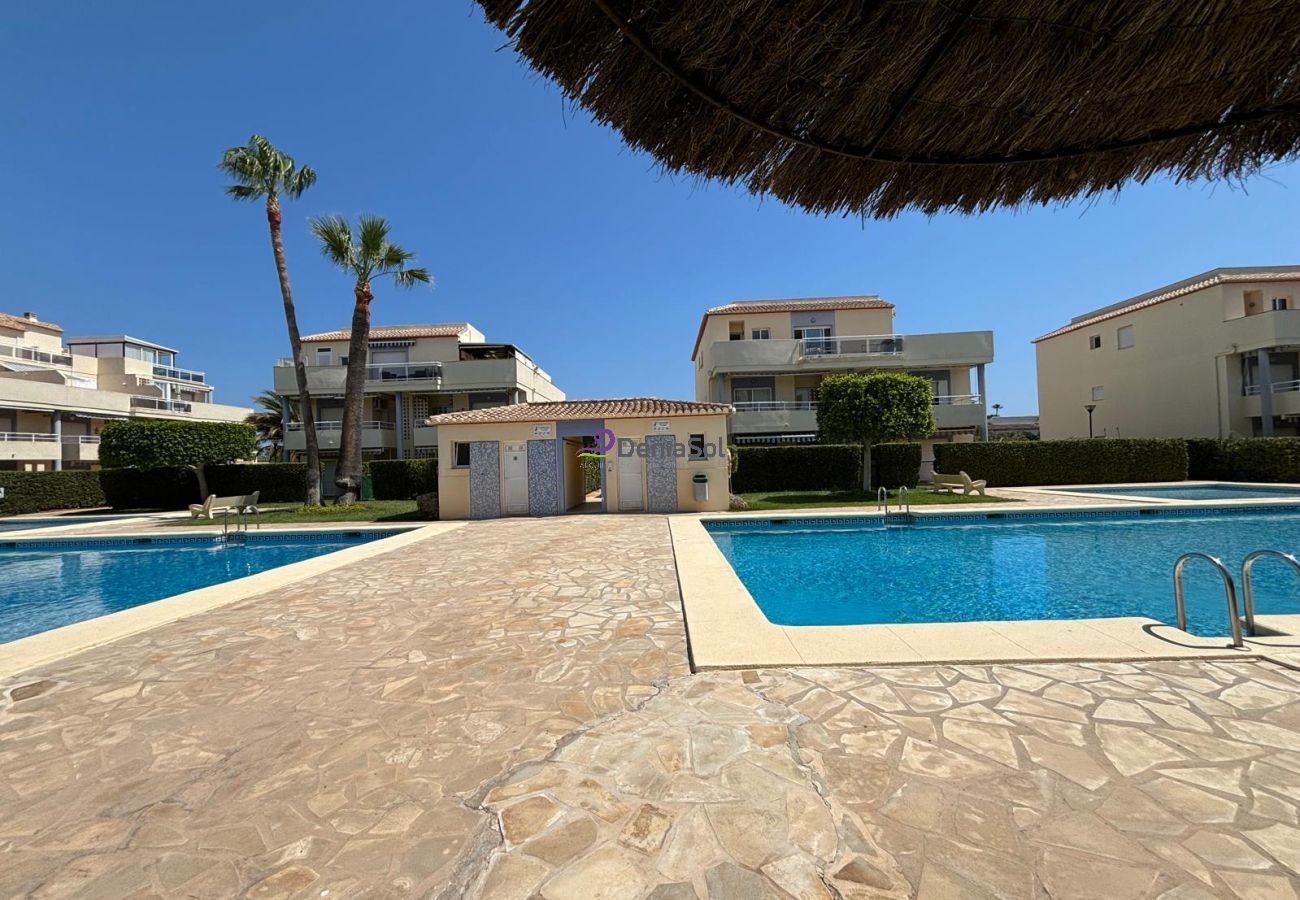 Appartement en première ligne de la plage de sable de "Las Marinas" à Dénia. Piscine et jardins comunautaires, L´appartement est distribué en salon salle à manger, cuisine américaine équipée, deux chambres et une salle de bain avec baignoire. Terrasse avec mobilier de jardin et vue sur le jardin et la piscine.