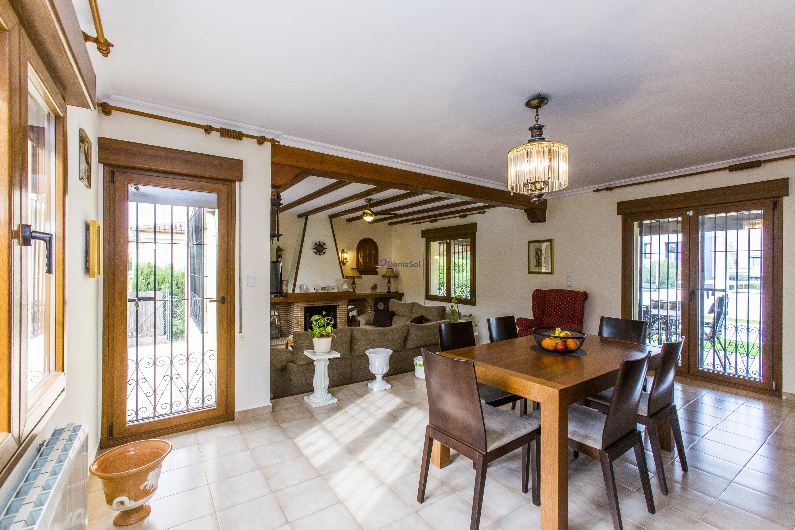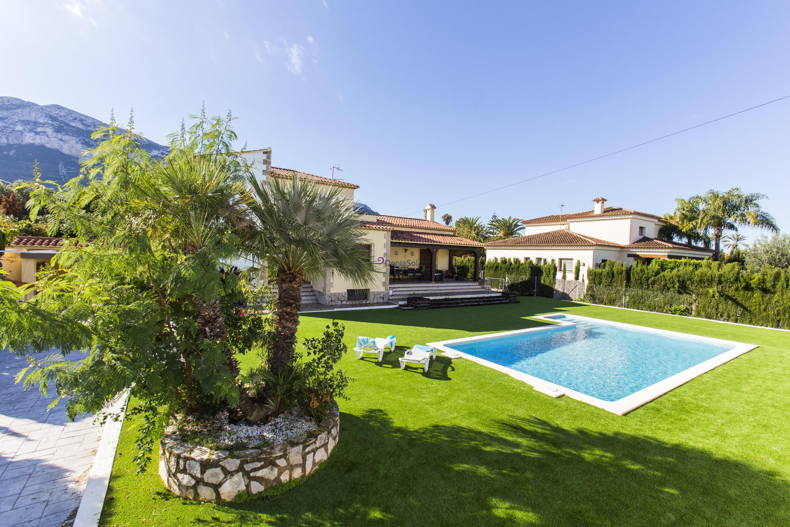 Location dans Denia, située aux pieds du mont Montgó, est trés bien située à 1 Km du centre ville de Denia et 2 Km de la mer. Cette maison de campagne de style rustique est située sur un grande parcelle rurale avec jardín et arbres fruitiers, terrace avec vue sur la campagne, mobilier de jardín, piscine privée, parking et barbacue. La Ville comprend de salle à manger avec televisión, cuisine clouturé avec lave-vaiselle, 4 chambres, 2 salles de bain. Grand terrace clôture.