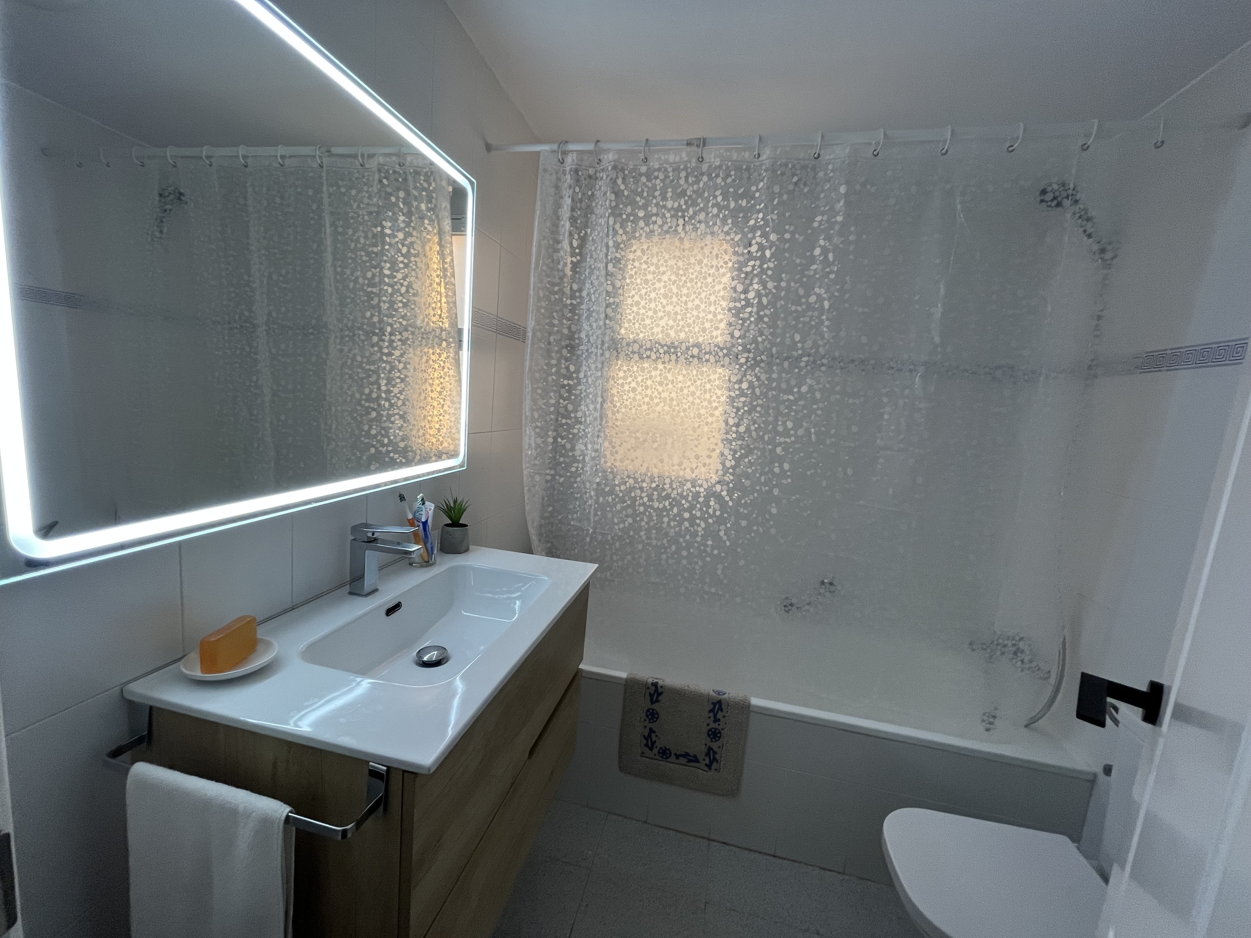 Elle dispose de jardin, lave-linge, fer à repasser, zone pour les enfants, climatisation dans le salon, piscine collective+infantile, parking extérieur même bâtiment.